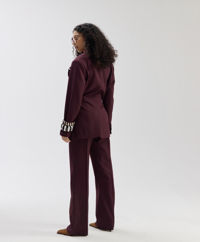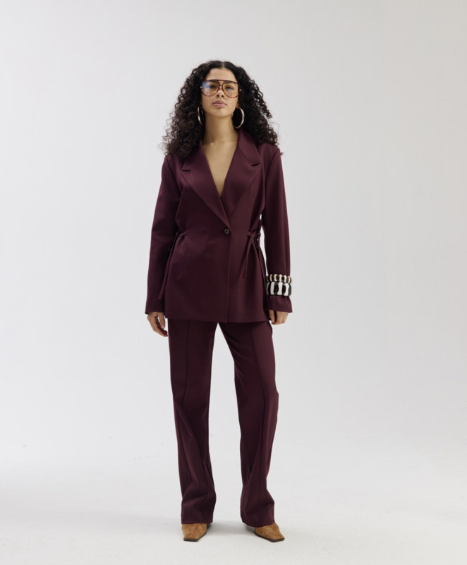 De POPPY pants in Winetasting zijn ontworpen met een strak silhouet en een comfortabele fit met stretch. De soepele stof beweegt fijn met je mee, waardoor de broek prettig draagt gedurende de hele dag. De diepe Winetasting kleur geeft een elegante uitstraling en maakt de broek makkelijk te stylen voor elke gelegenheid.