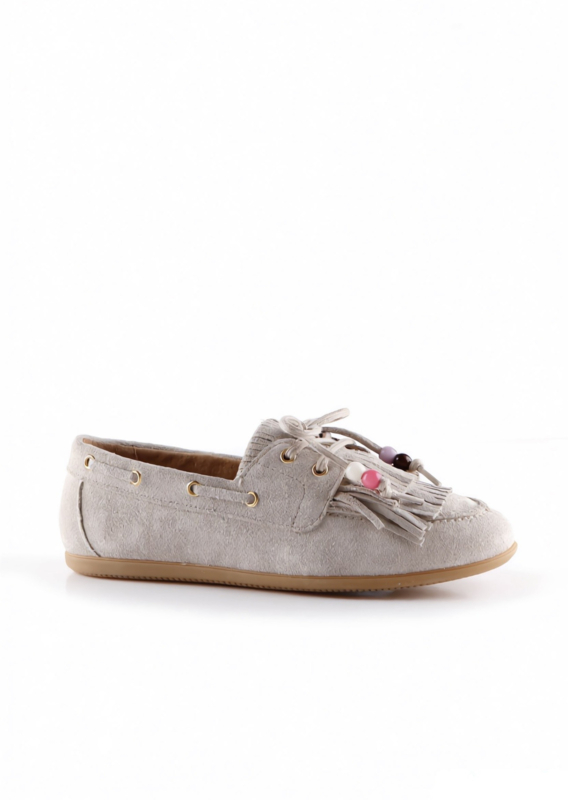 De Latty fringes mocassin in de kleur zand is een absolute trend dit seizoen! De mocassin heeft een platte zool met touwtjes op de voorzijde waardoor je de schoen strakker kunt trekken. Ook heeft deze mocassin fringes op de voorkant van de schoen. De Latty is aan de binnenkant van leer en aan de buitenkant gemaakt van suede stof.